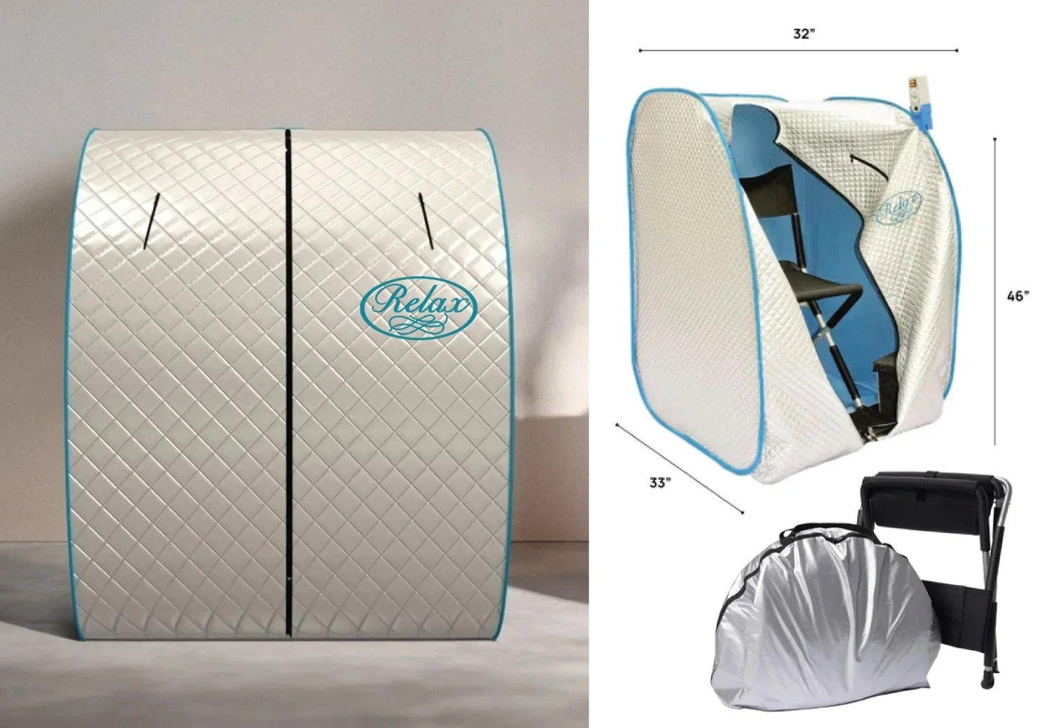 *Photos and information above are property of Relax Saunas and may be subject to copyright. (https://relaxsaunas.com/products/silver-relax-far-infrared-sauna)